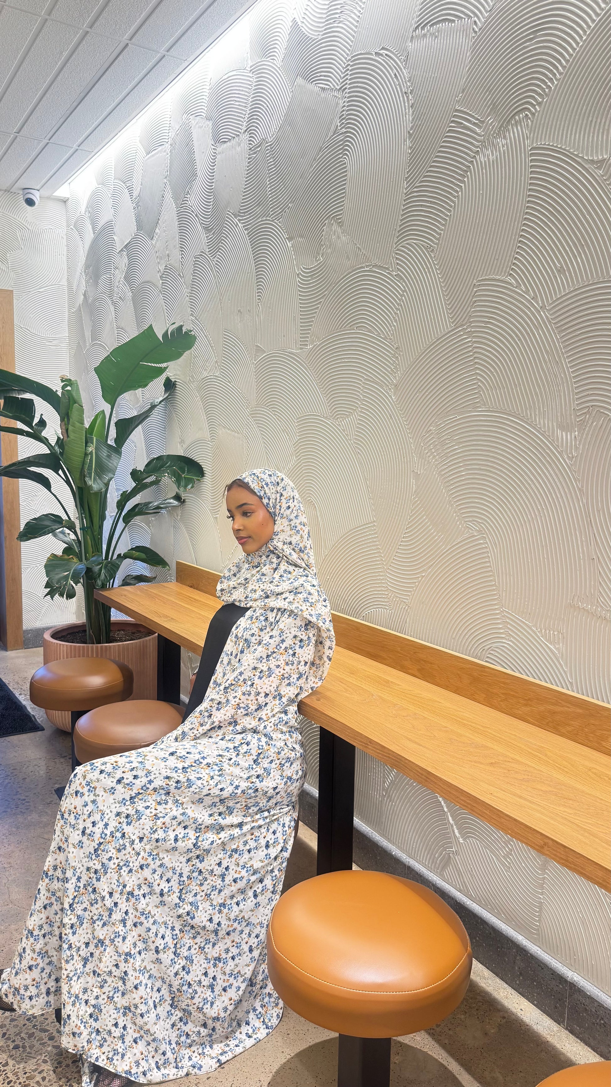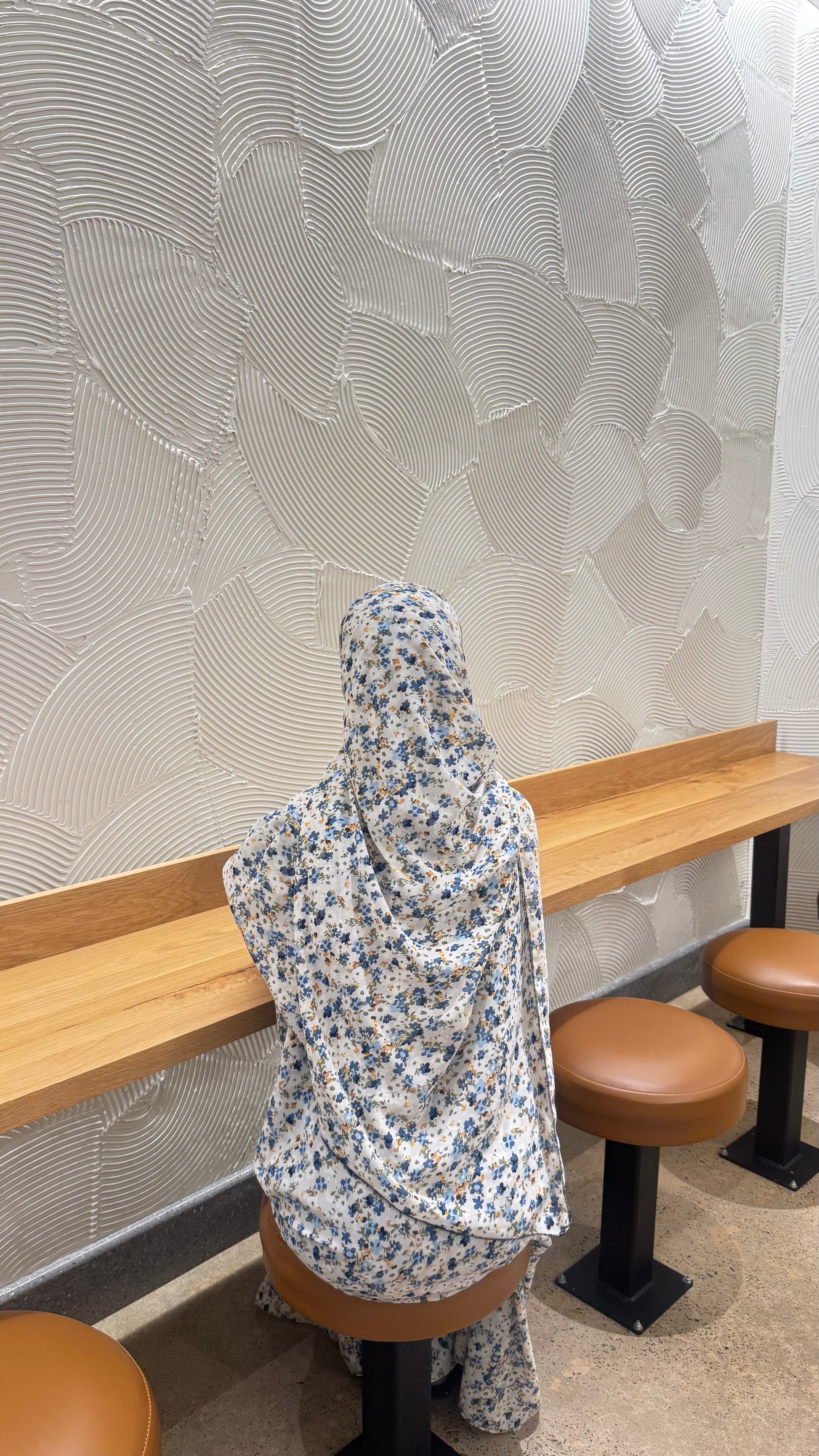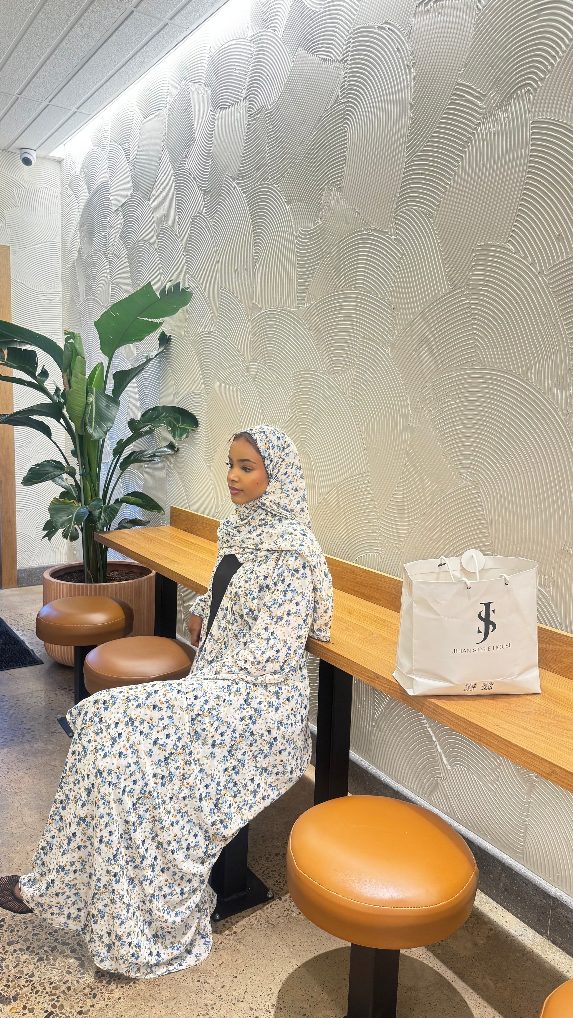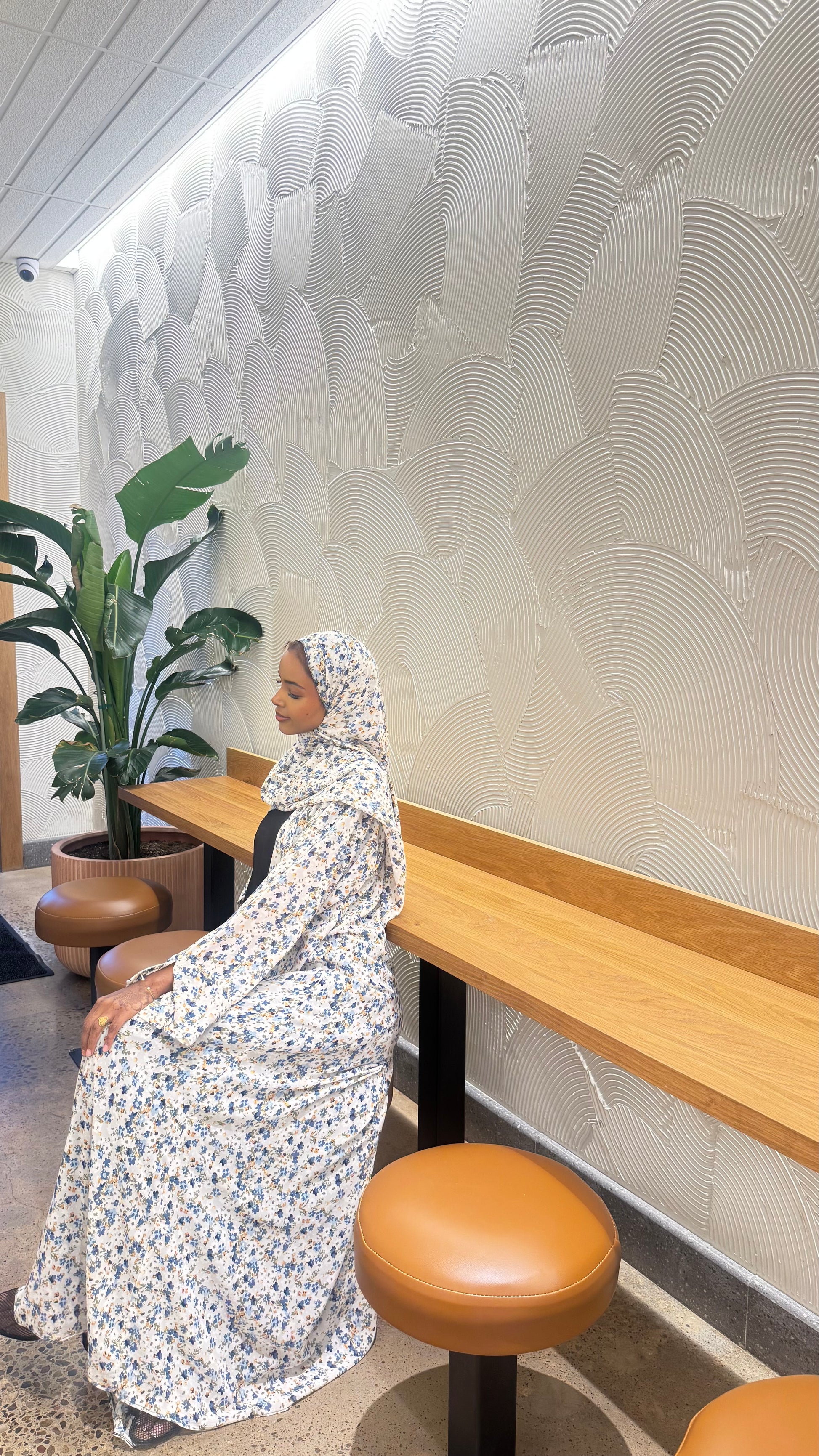 Soft florals dance across a white canvas, creating a look that’s effortlessly graceful. Garden Whisper captures the beauty of simplicity — calm, pure, and endlessly elegant.